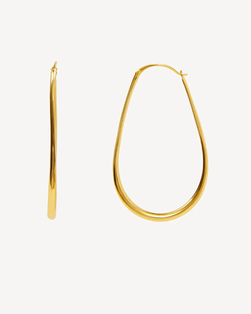 Pendiente tipo aro alargado dorado.
