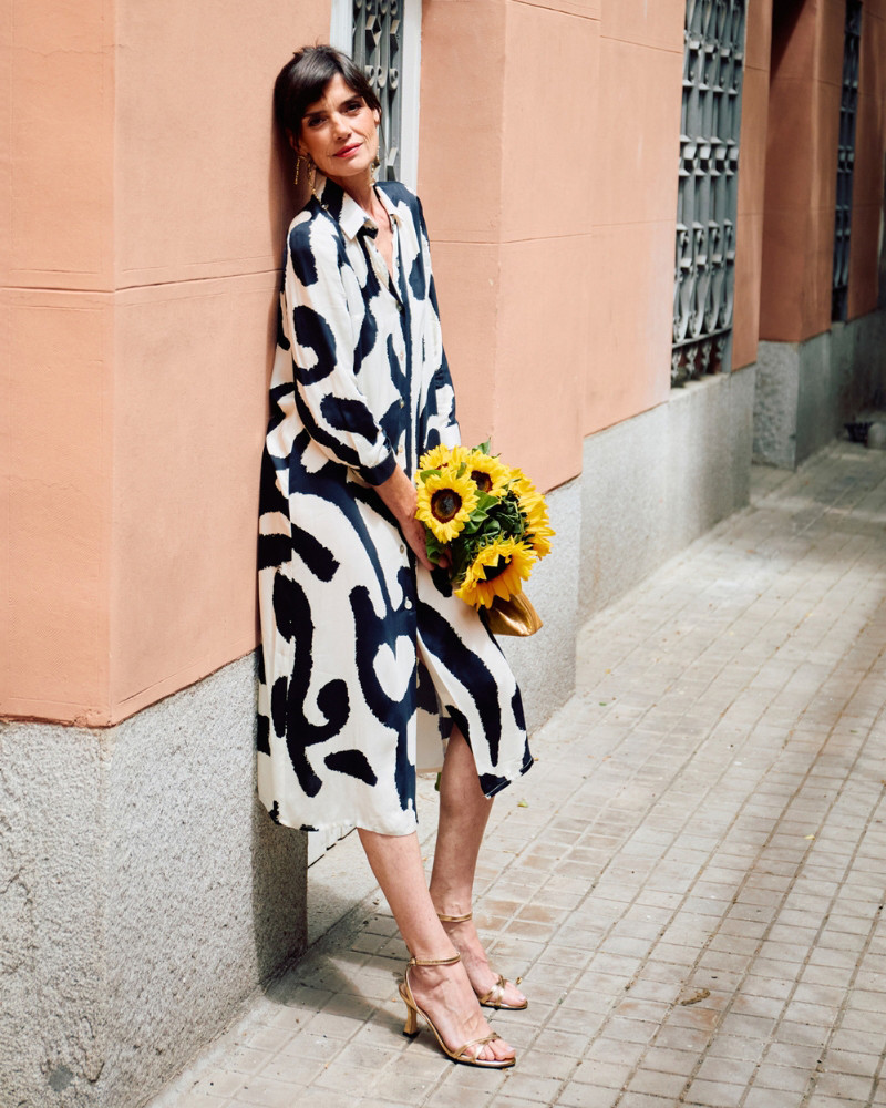 Vestido Camisero Fluido con estampado en blanco y negro.