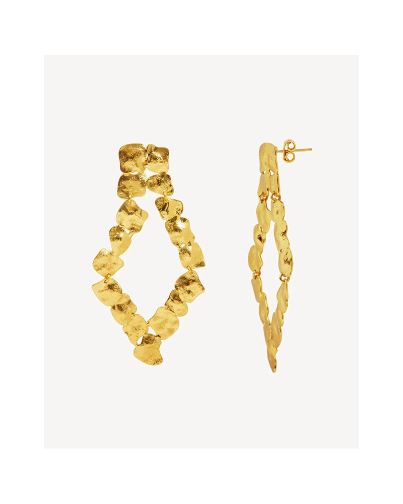 Pendiente largo dorado de dos piezas en forma de rombo.
