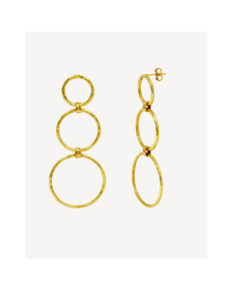 Pendientes de tres aros dorados.