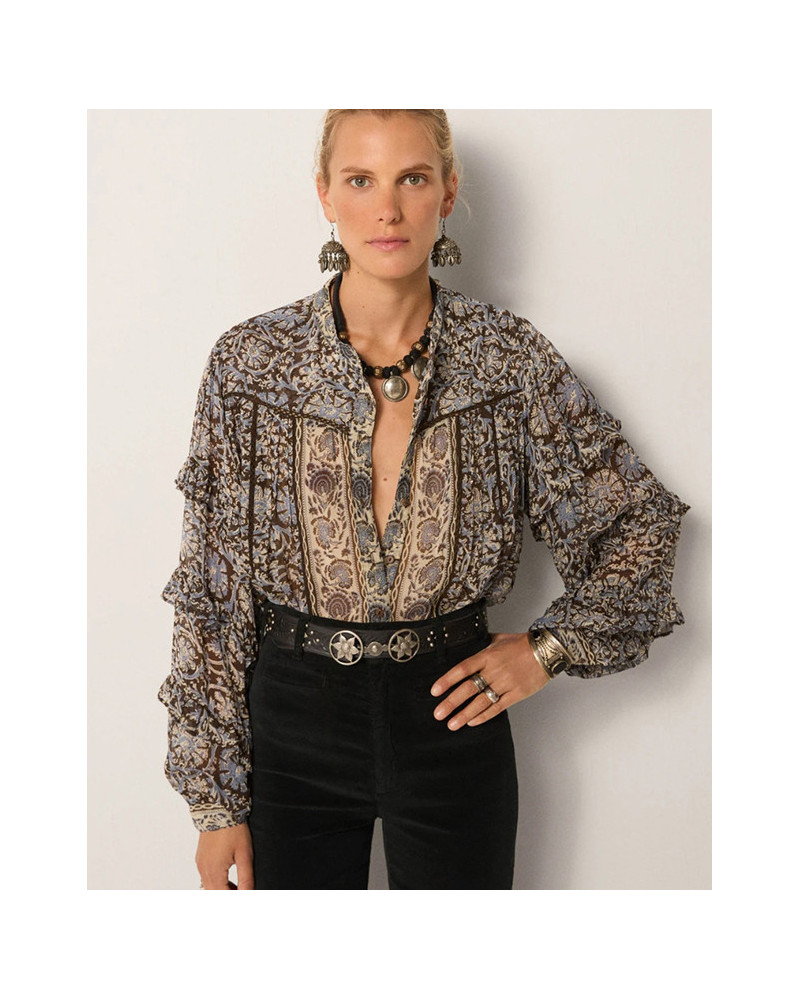 El cuello está cortado para usarse abierto o abrochado, lo que le da versatilidad.