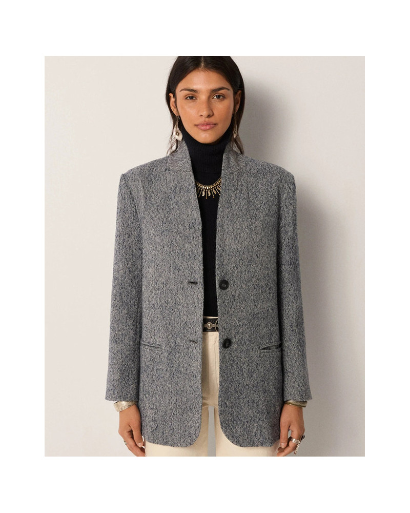 El tejido manual de mezcla de lana texturizada crea un blazer con una presencia discreta.