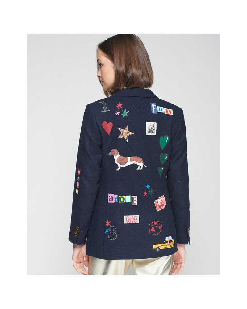 Americana azul marino de corte recto confeccionada en mezcla con 50% lana.