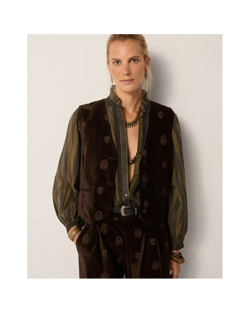 CHALECO TERCIOPELO MARRÓN BORDADOS