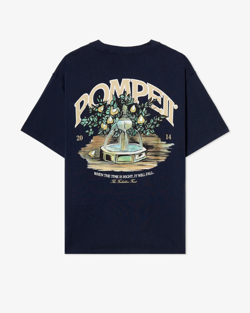 El diseño combina tipografía con la ilustración de un peral y el mensaje “when the time is right, it will fall”. Una metáfora visual que conecta con el concepto de la colección Under
