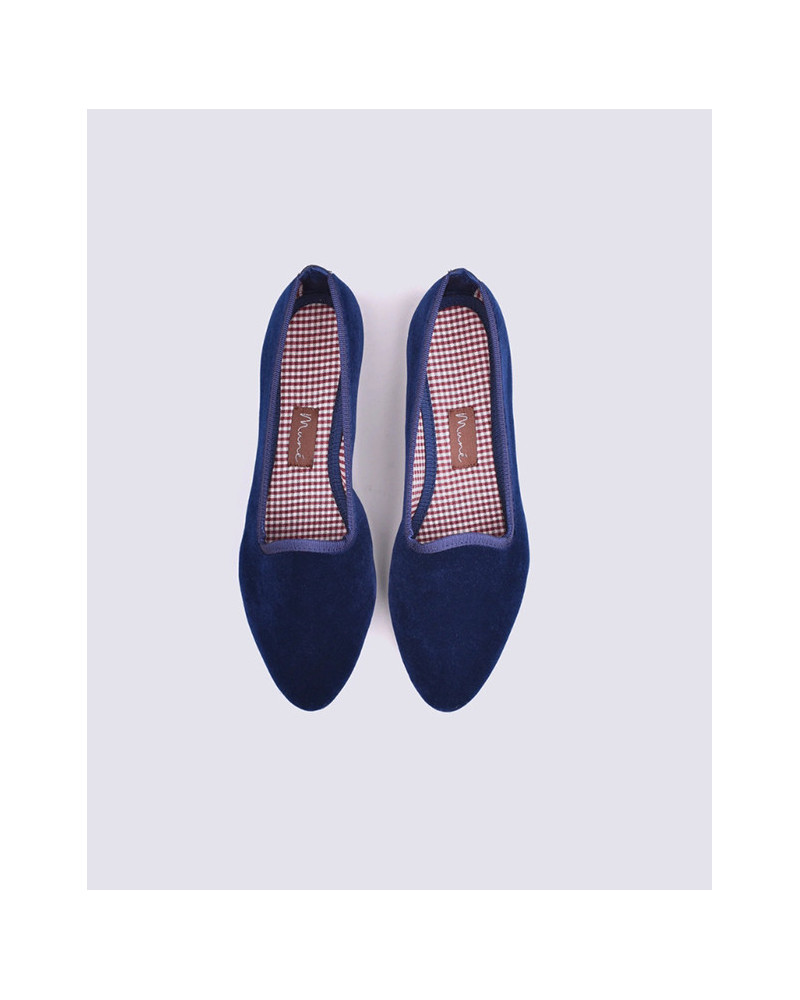 Slipper realizado en resistente terciopelo lavable de alta calidad color marino y ribete al tono.