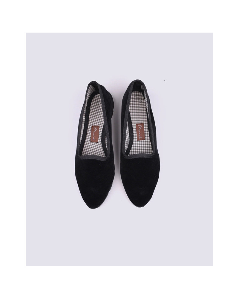 Slippers con resistente terciopelo negro y ribete negro.