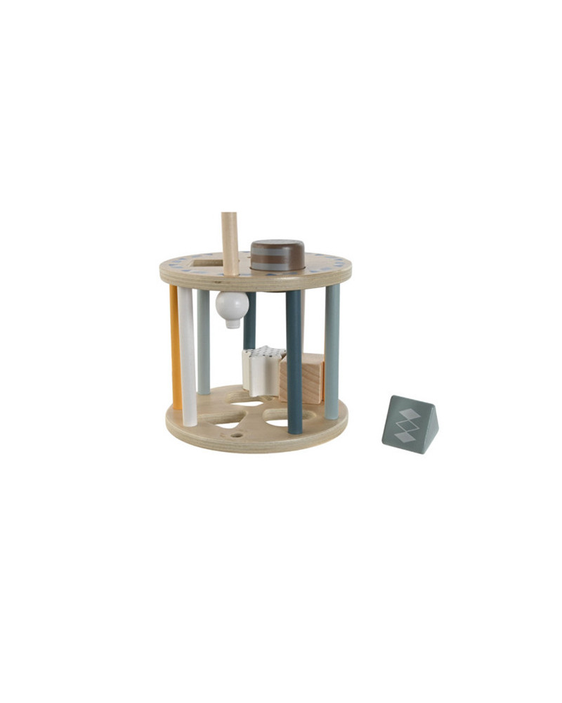 El juego consta de 6 piezas con formas y un clasificador giratorio.