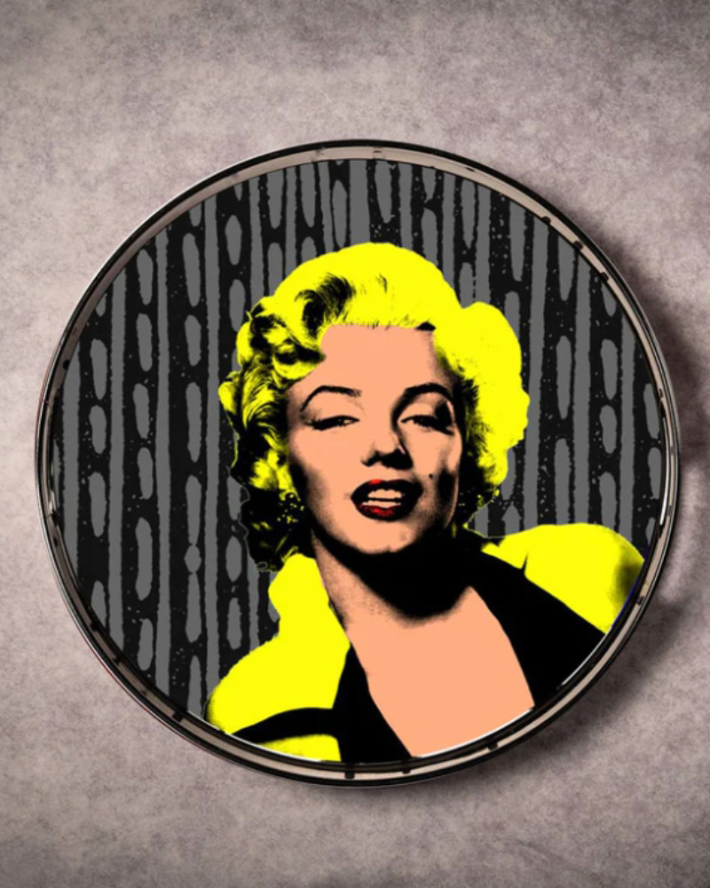 Bandeja redonda decorativa con detalle de Marilyn Monroe en amarillo.