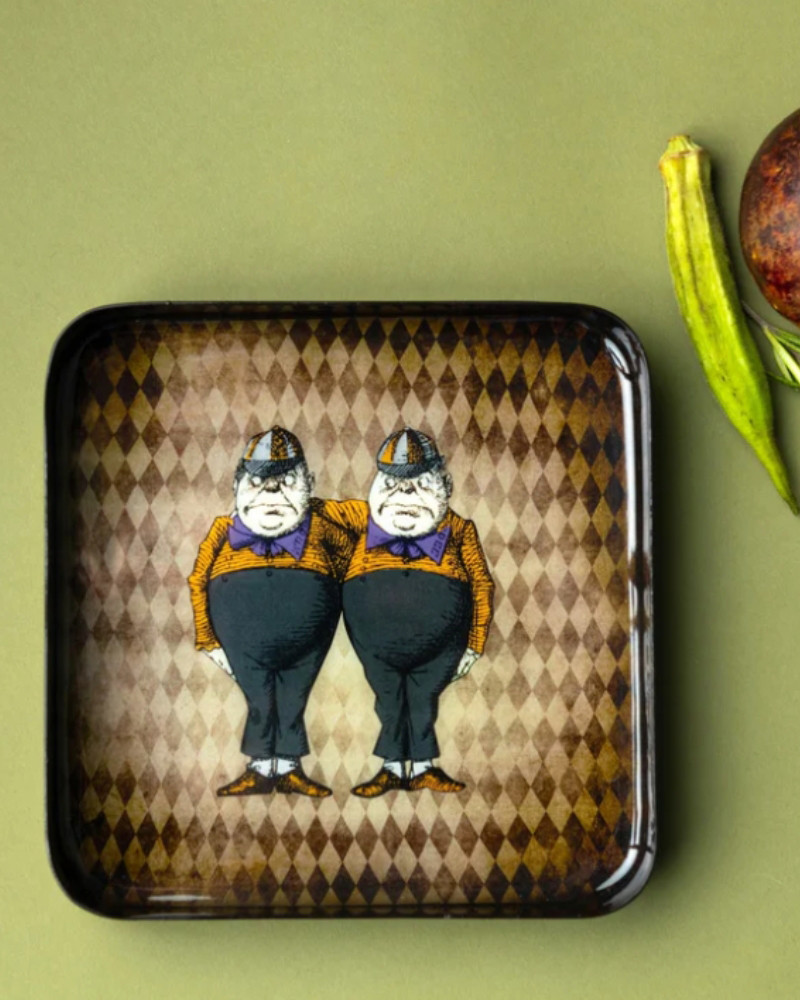 Bandeja cuadrada decorativa con detalle de gemelos.