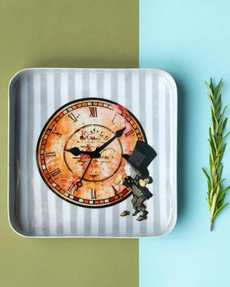 Bandeja cuadrada decorativa con detalle de Sombrerero Loco.