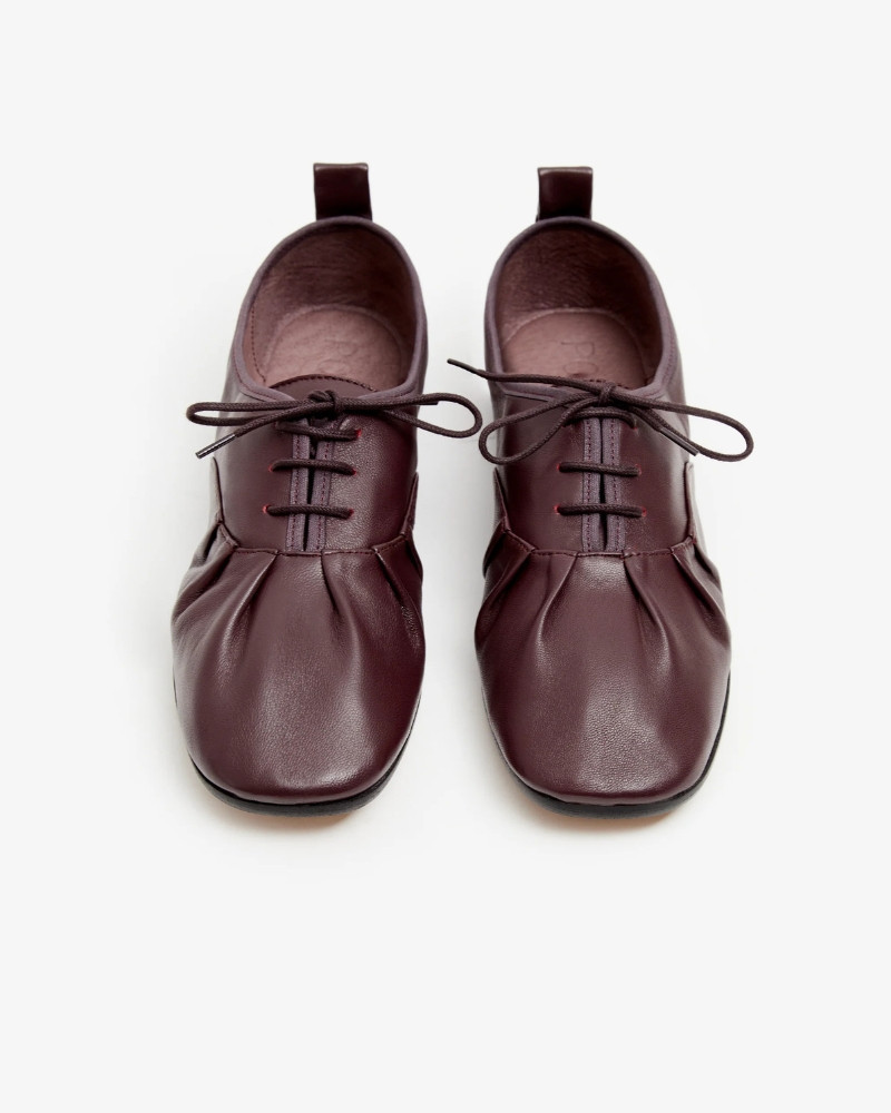 Zapato con silueta derby plana confeccionada en suave napa y fabricada en España.