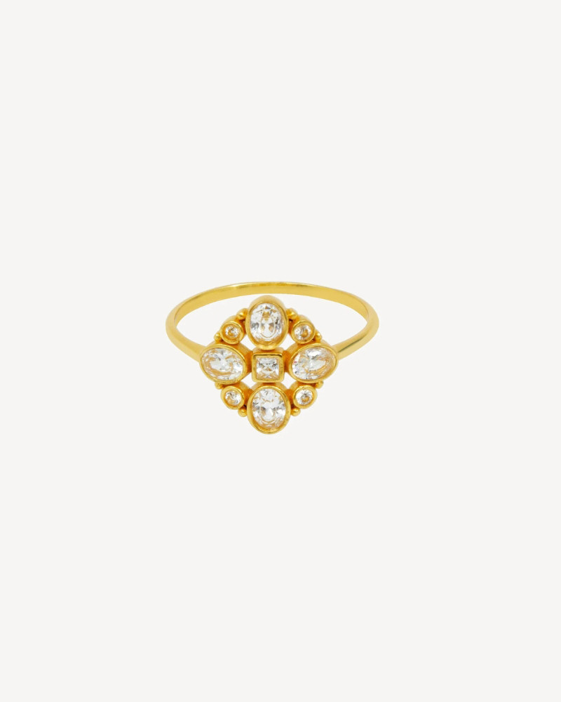 Anillo con pieza vintage formada por circonitas de diferentes formas.