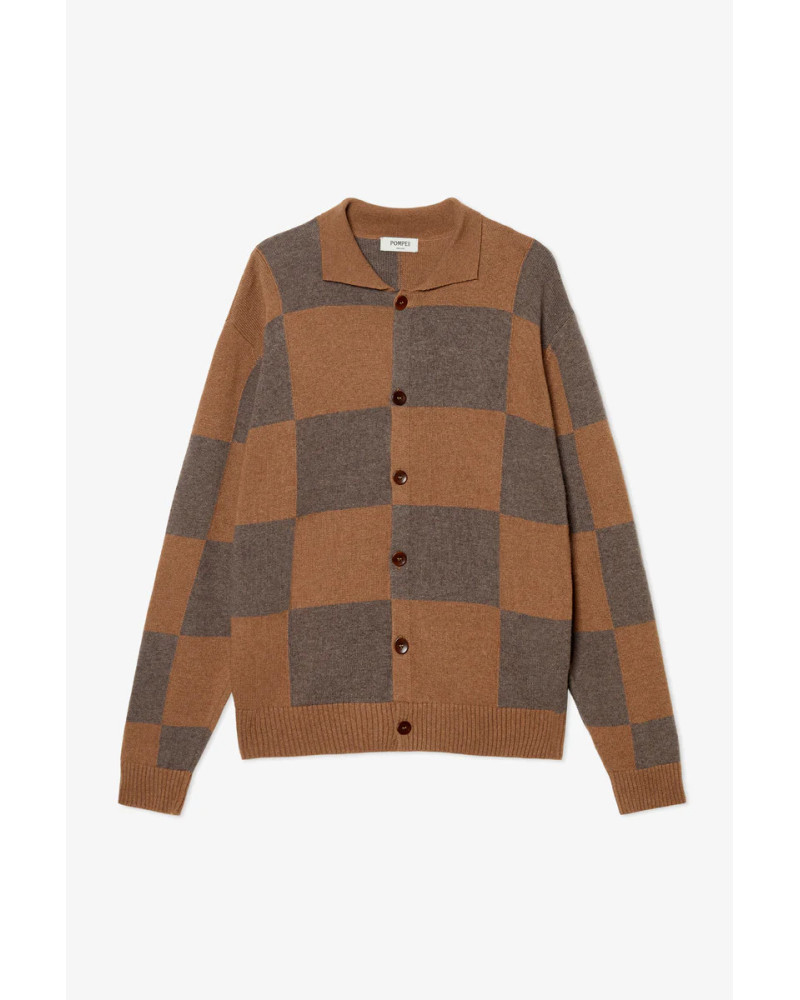 Cárdigan de cuadros confeccionado en lana y fabricado en Portugal, aporta calidez y personalidad a los días de otoño.