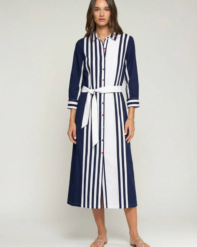 VESTIDO CAMISERO RAYAS MARINO Y BLANCO