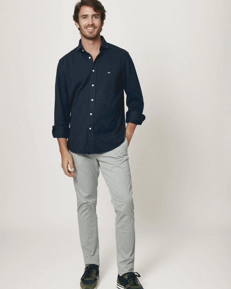 Con un suave tejido piqué 100 % algodón esta camisa ofrece una estructura transpirable y versátil que se adapta a distintos momentos del día. Su estilo sencillo permite combinarla con facilidad, tanto en looks formales como informales, y su tejido ligero la convierte en una opción ideal durante todo el año.