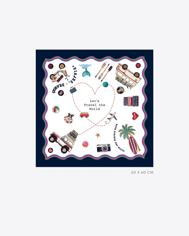 PAÑUELO MEDIANO SEDA LET’S TRAVEL THE WORLD
